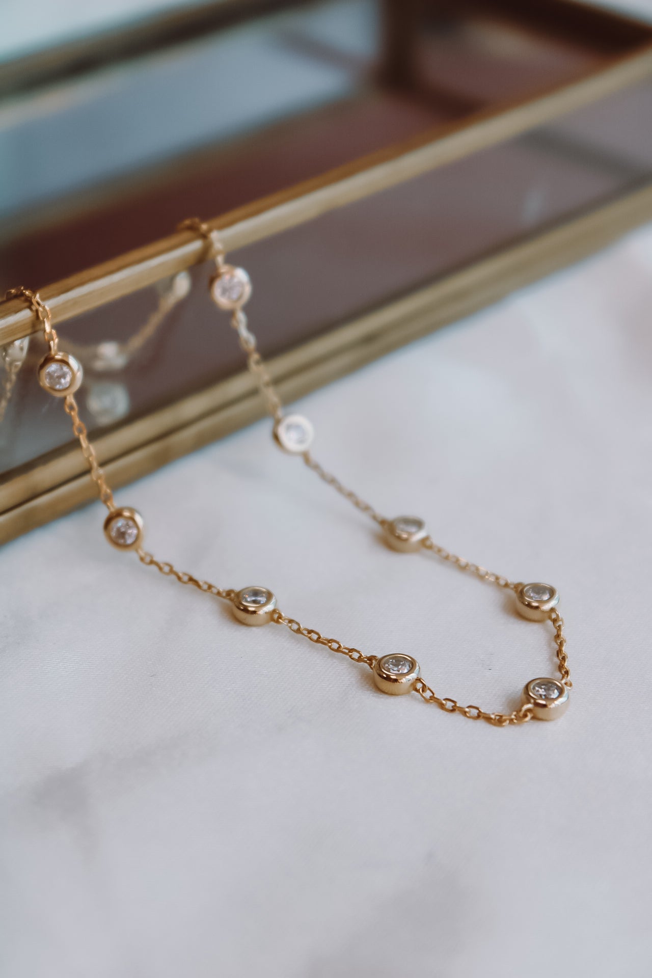 Diseñado para reflejar la elegancia en su máxima expresión, el Collar Moissanita Line Silver está elaborado en plata de ley 925 y enchape de oro 18k y engastado con 20 moissanitas de 3 mm (0.10 ct cada una), que en conjunto suman 2 ct de luminosidad total.