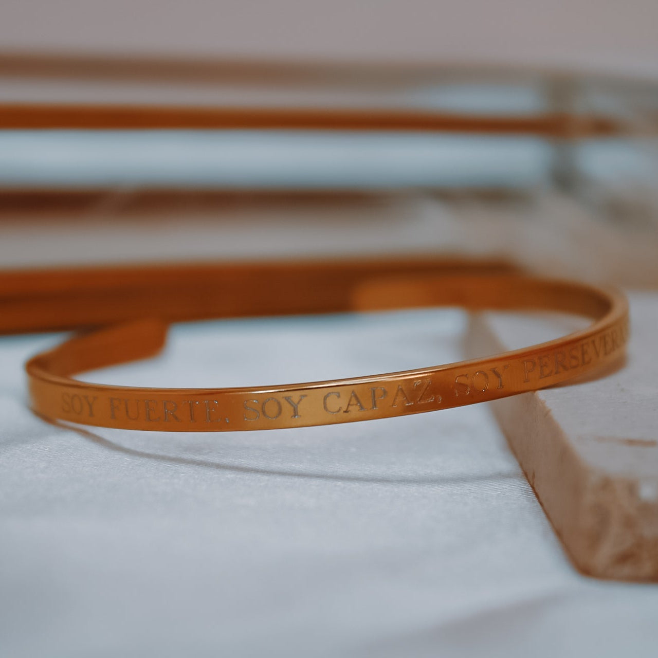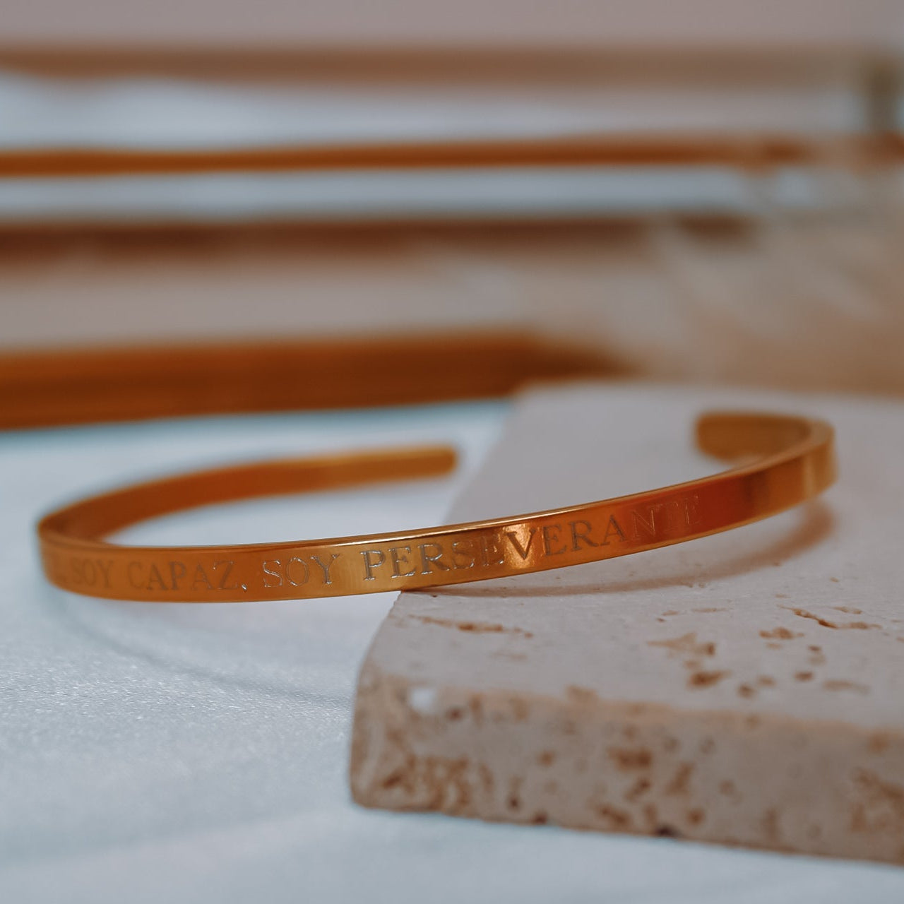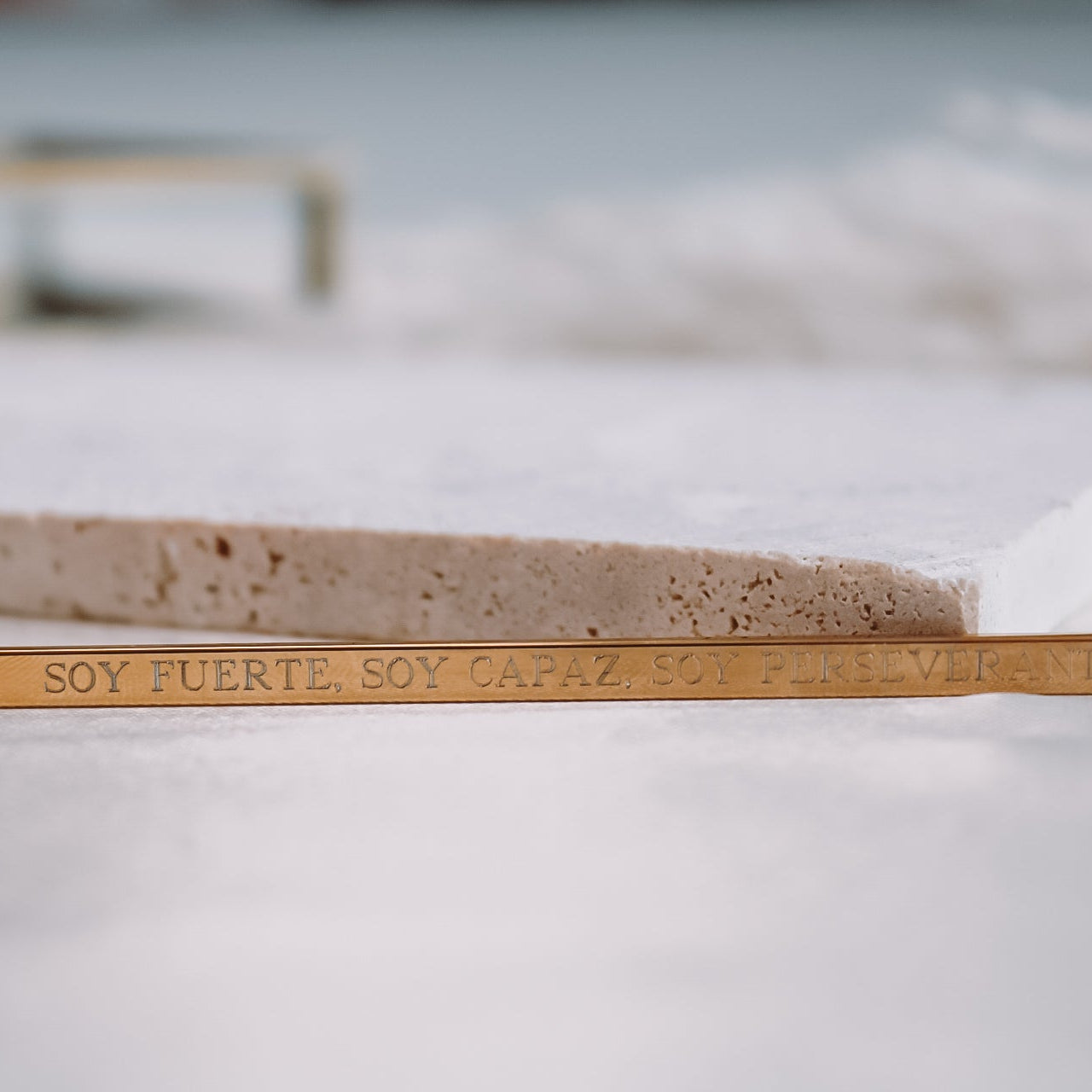 Su frase grabada —“Soy fuerte, soy capaz, soy perseverante”— es un recordatorio diario de tu fortaleza interior y de todo lo que eres capaz de lograr.