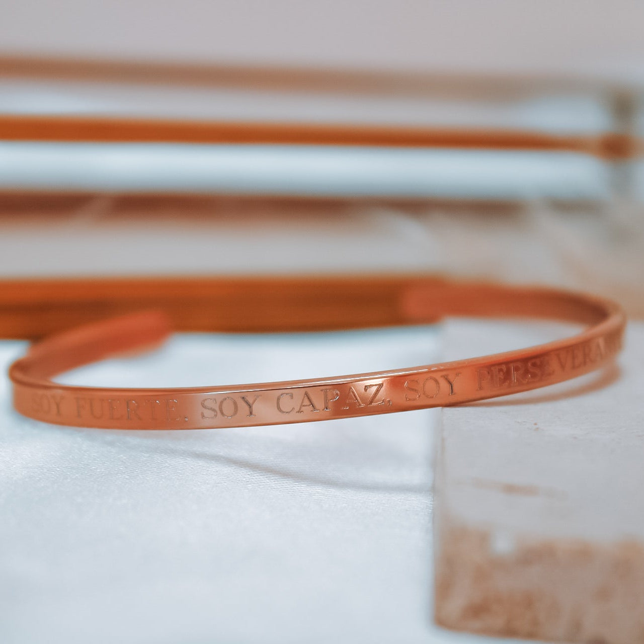 Esclava Manifiesta "Soy fuerte, soy capaz, soy perseverante" Oro Rosa - 4mm