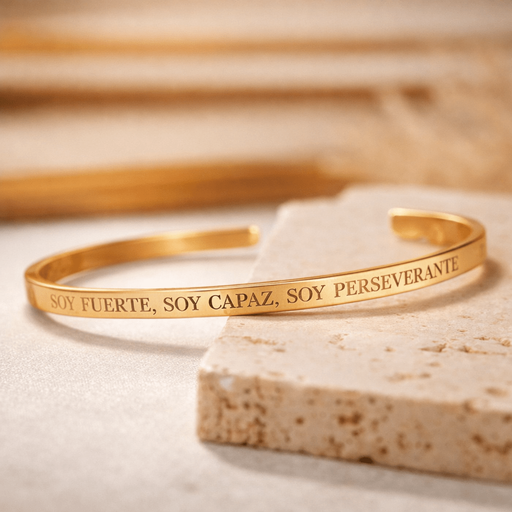 Su frase grabada —“Soy fuerte, soy capaz, soy perseverante”— es un recordatorio diario de tu fortaleza interior y de todo lo que eres capaz de lograr.