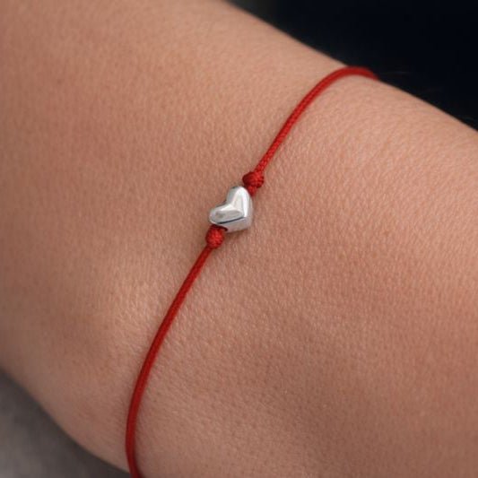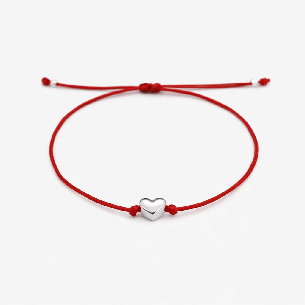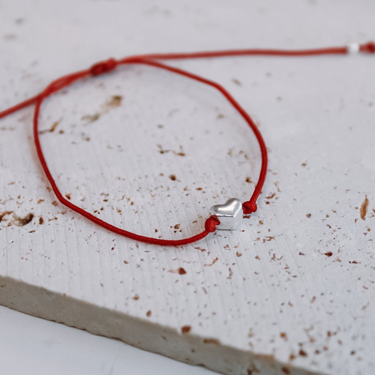 Esta pulsera de hilo rojo con corazón de plata es un amuleto lleno de intención, ideal para regalar o llevar como recordatorio diario de amor, protección y conexión.