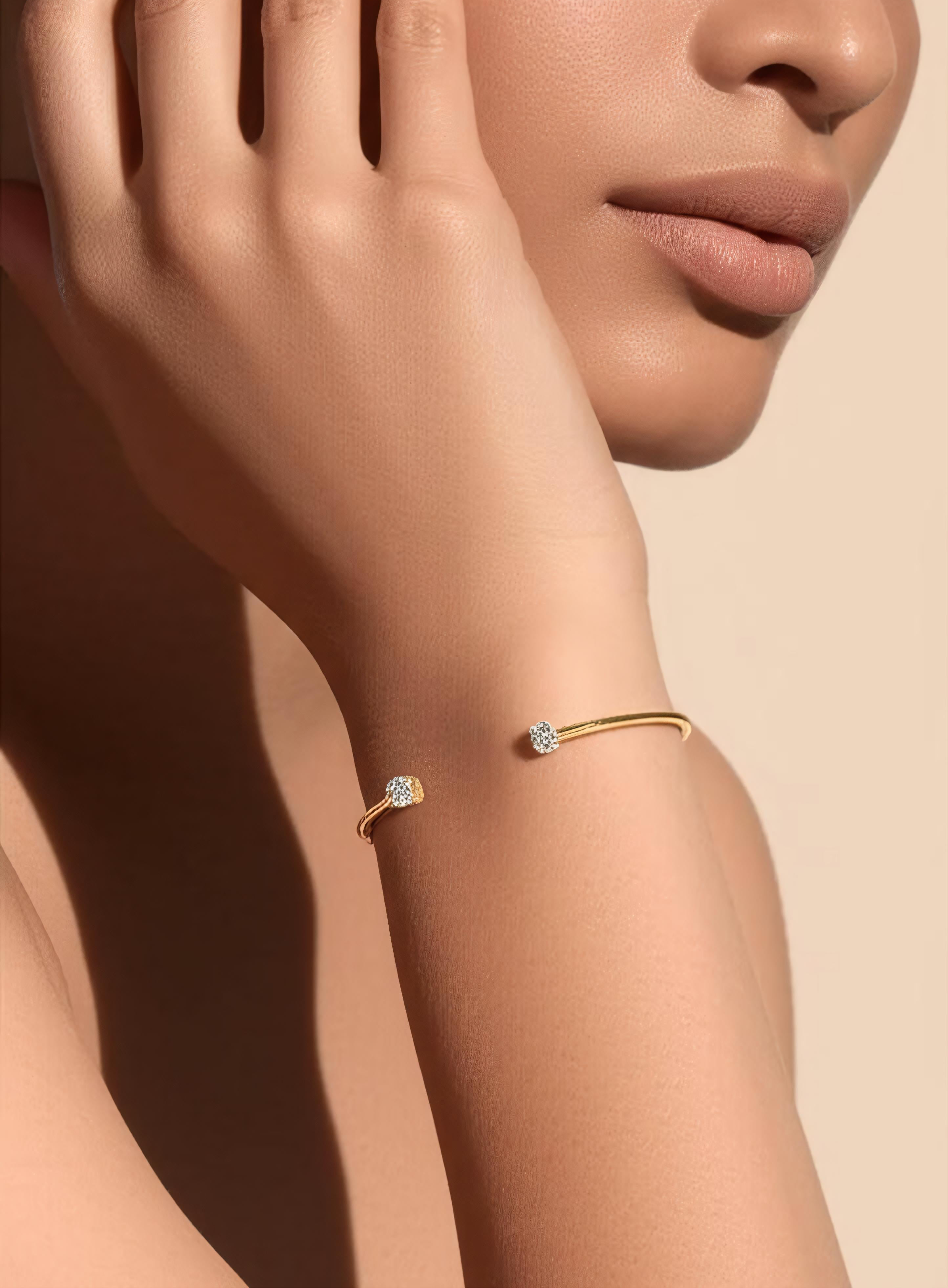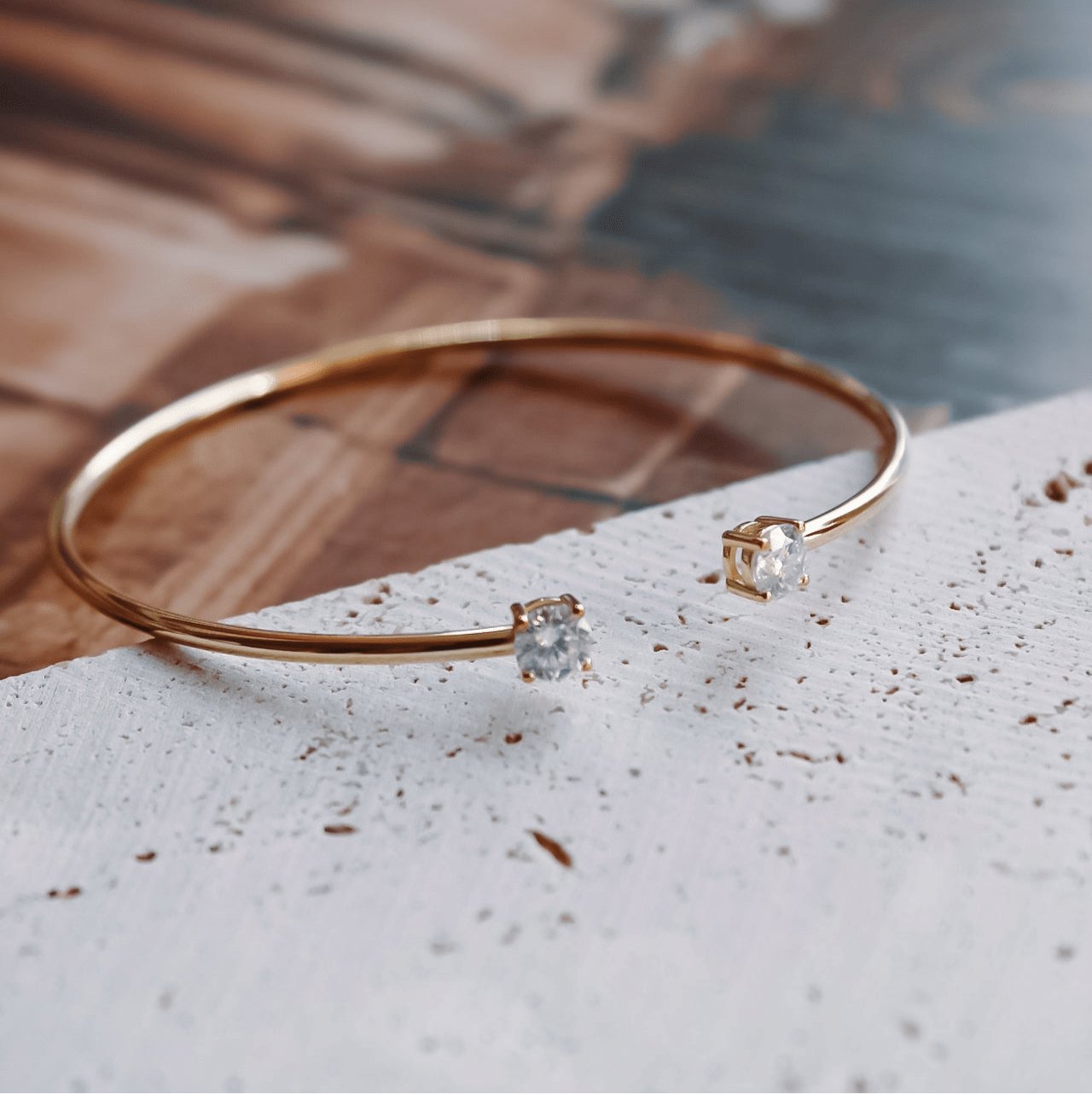 Diseñada para brillar con fuerza y sutileza, la Esclava Moissanita Silver es una pieza de carácter atemporal y sofisticado. Fabricada en plata ley 925 enchapada en oro 18k, destaca por la presencia de dos moissanitas de 5 mm (0,5 ct cada una), engastadas con precisión y elegancia en corte brillante.