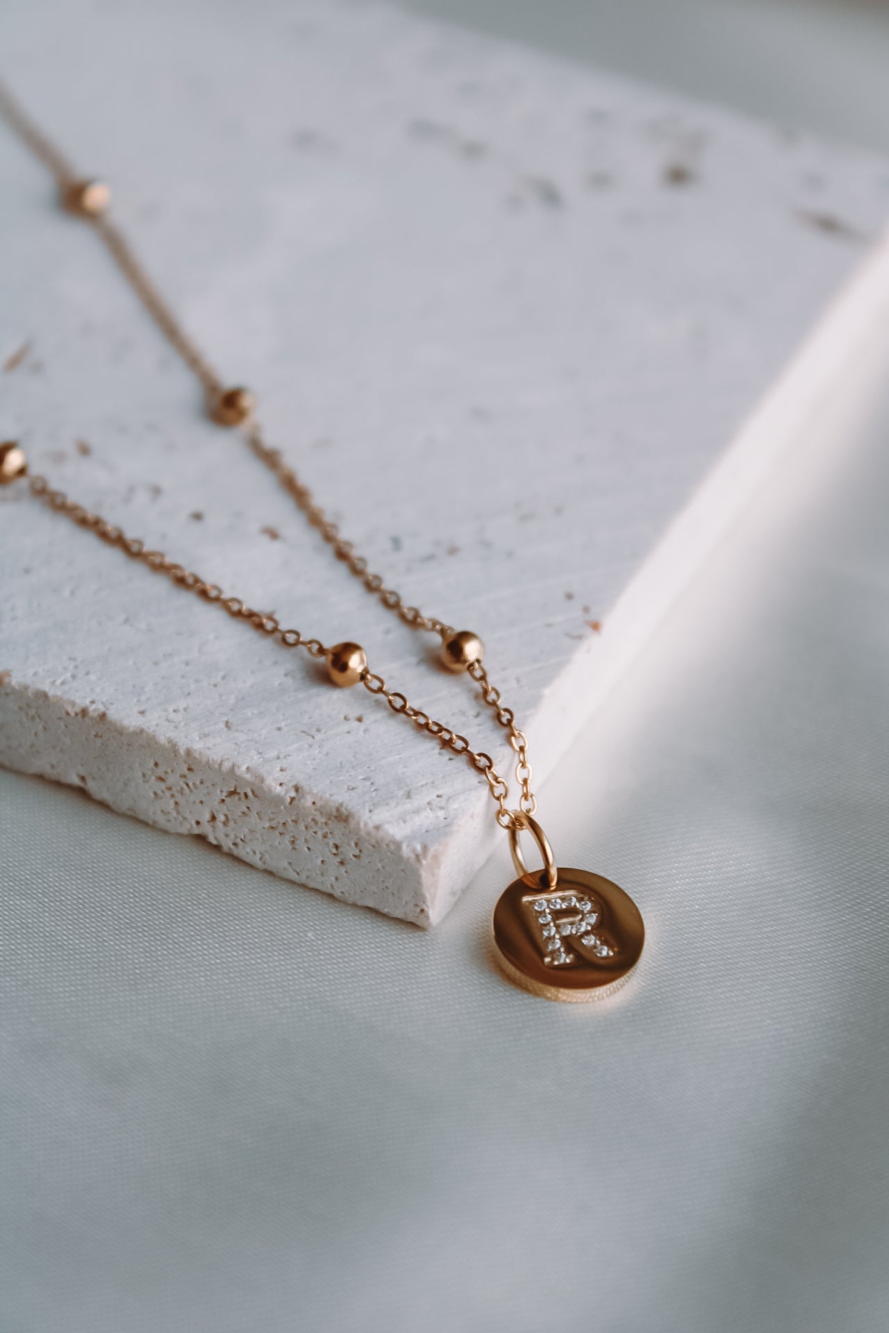 Este collar combina una cadena de eslabones de 45 cm + 5 cm de extensión con una medalla circular de 10 mm, donde la inicial está engastada con mini circones, aportando un brillo delicado y sofisticado a tu look diario.